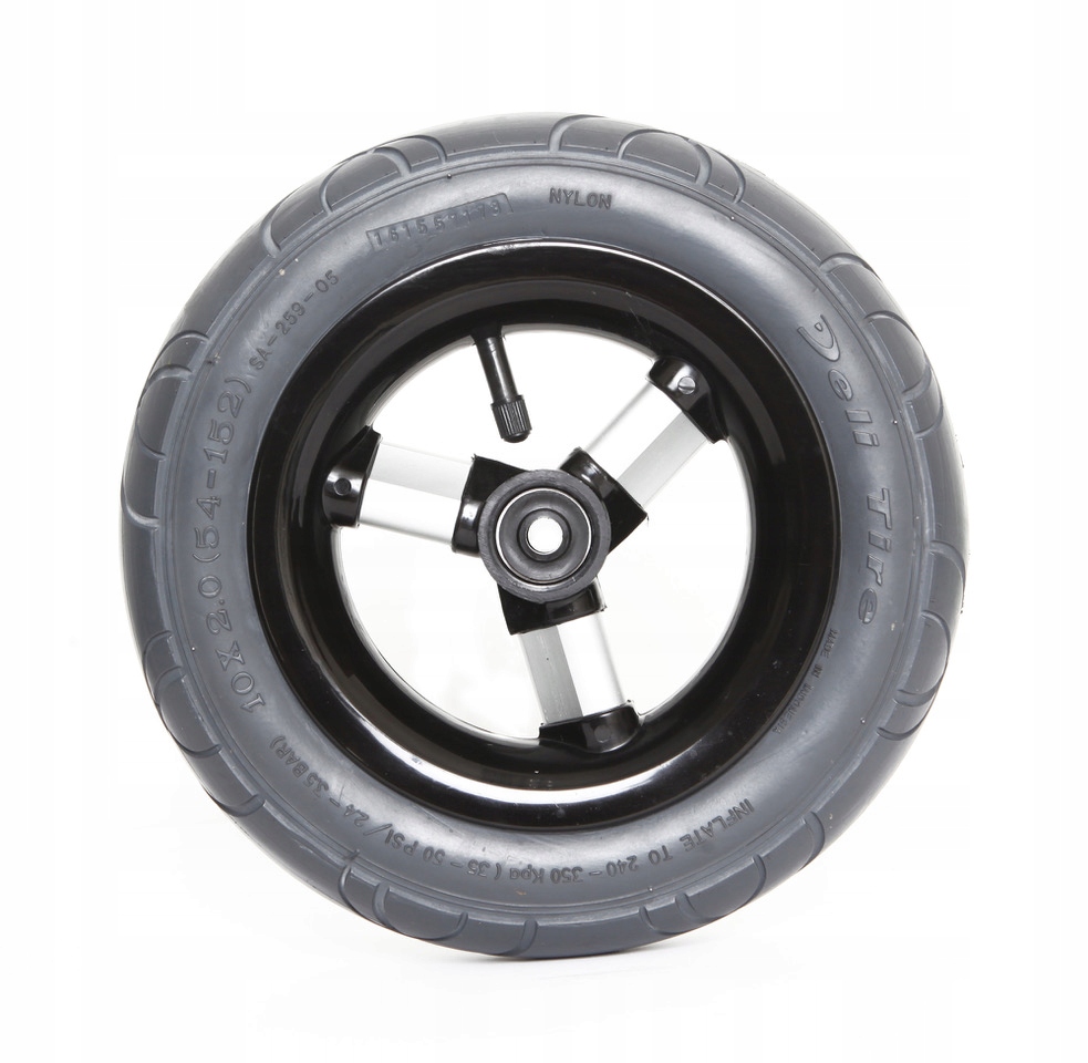 Komplet kół czarnych ALU do wózka dziecięcego TAKO 10 cali (przód) 2 szt 12 cali (tył) 2 szt z oponą pompowaną szarą niebrudzącą